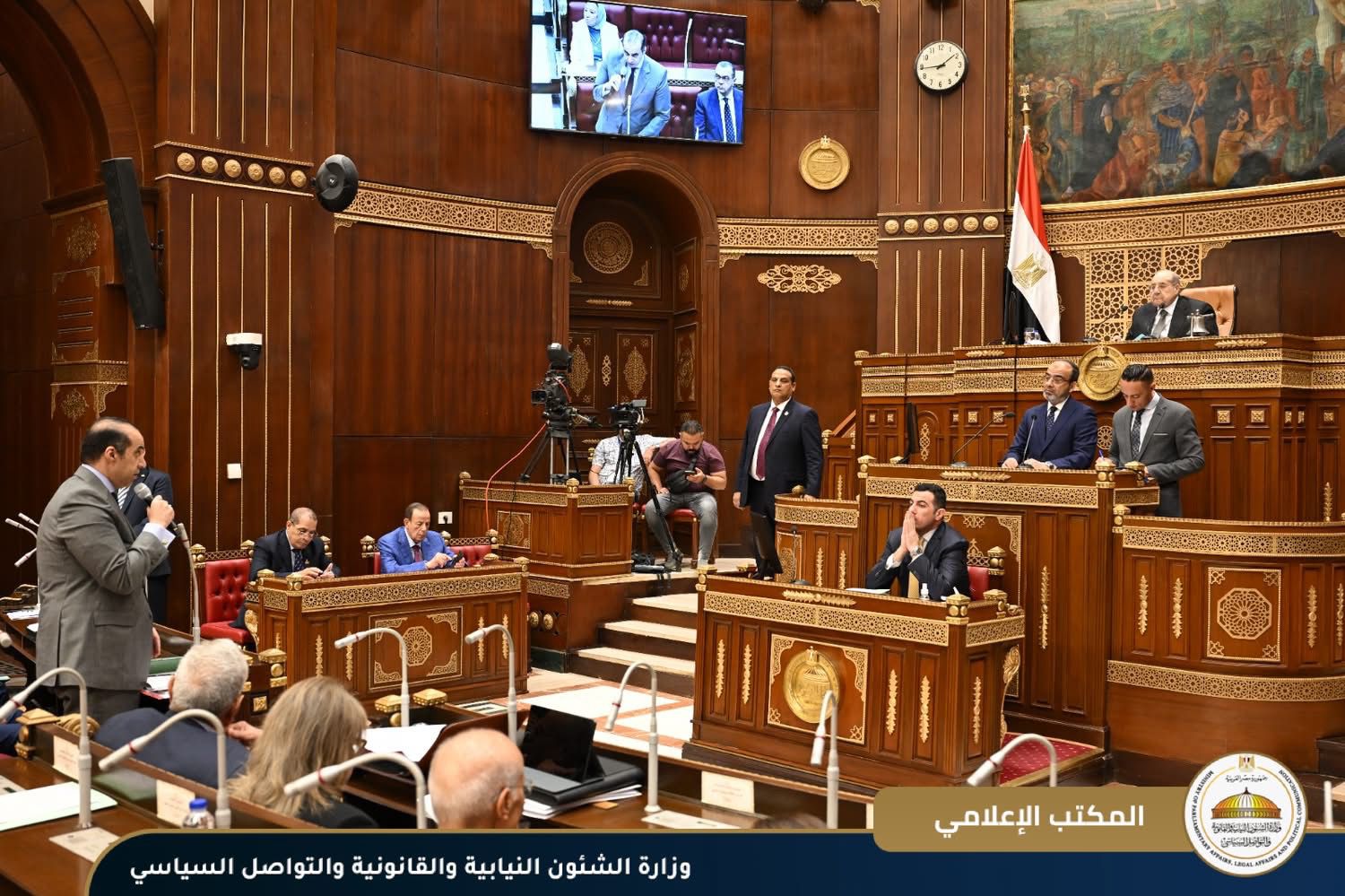 حضر المستشار محمود فوزي، وزير الشئون النيابية والقانونية والتواصل السياسي، جلسة مجلس الشيوخ، برئاسة المستشار عبد الوهاب عبد الرازق، رئيس المجلس، المنعقدة صباح يوم الأحد الموافق ١ يونيو ٢٠٢٥، بحضور الأستاذ شريف الكيلاني، نائب وزير المالية، وذلك لمناقشة تقرير اللجنة المشتركة من لجنة الشئون المالية والاقتصادية والاستثمار ومكتب لجنة الصناعة والتجارة والمشروعات المتوسطة والصغيرة ومتناهية الصغر عن الدراسة المقدمة من السيد النائب أكمل نجاتى، بشأن: "دراسة الأثر التشريعي لقانون الضريبة على العقارات المبنية الصادر بالقانون رقم ١٩٦ لسنة ٢٠٠٨ بشأن (الضريبة العقارية)".