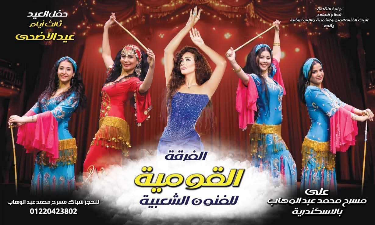 يقيم البيت الفني للفنون الشعبية والإستعراضية برئاسة الفنان تامر عبدالمنعم إحتفالية عيد الأضحى والتي يقوم بإحيائها ميجا ستار "لؤي" ثالث أيام عيد الأضحى المبارك على مسرح محمد عبدالوهاب بالأسكندرية.