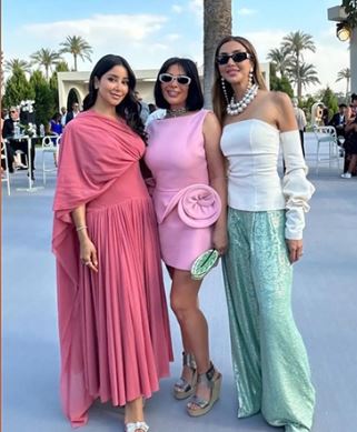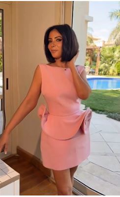 ظهرت منى بفستان وردي قصير مكشوف الظهر، يتميز بتصميم أنثوي راقٍ مزين بورود بارزة على الجانبين، من توقيع دار الأزياء العالمية Magda Butrym، ويبلغ سعره نحو 82 ألف جنيه مصري.