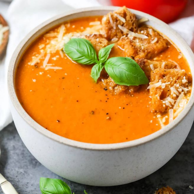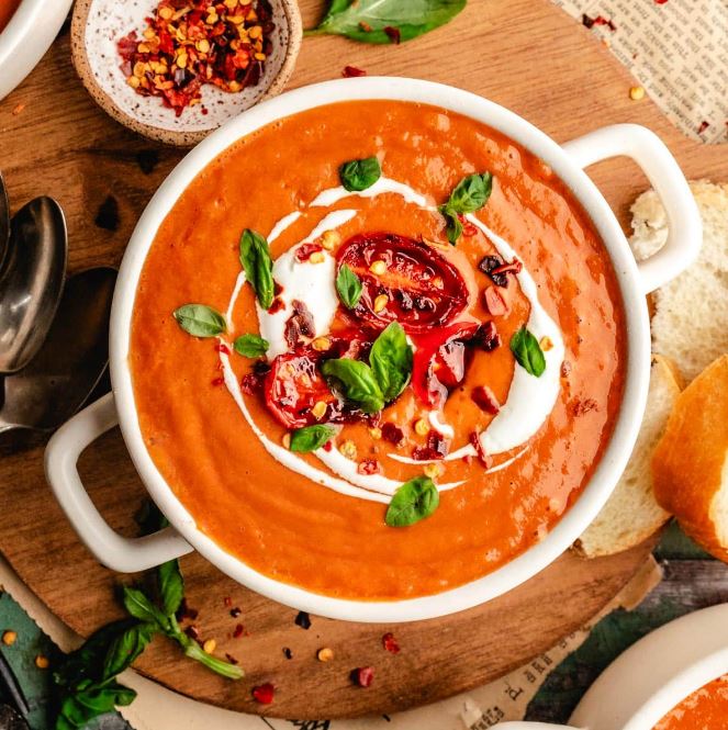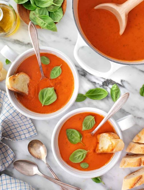 وصفة شوربة الطماطم بالريحان وجبة صحية تصلح لطبق جانبي أو وجبة عشاء خفيفة كلها مكونات طبيعية ومليئة بالعناصر الغذائية التي يحتاجها الجسم لأن الريحان يعمل على تحسين الهضم وتخفيف الالتهابات ويقلل من التوتر كما أن الطماطم لها فوائد عديدة تساعد علي تنظيم ضغط الدم تقوي الدورة الدموية وتقلل الإمساك لذا يقدم لكم مصر تايمز طريقة تحضير شوربة الطماطم بالريحان اللذيذة :