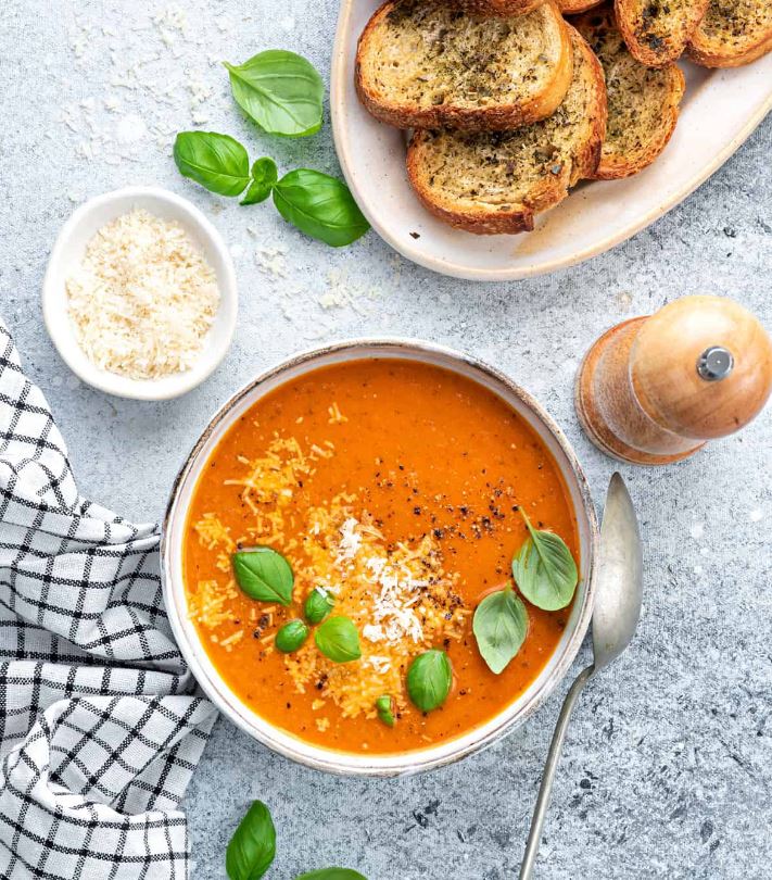 تحضير شوربة الطماطم بالريحان على الطريقة الإيطالية