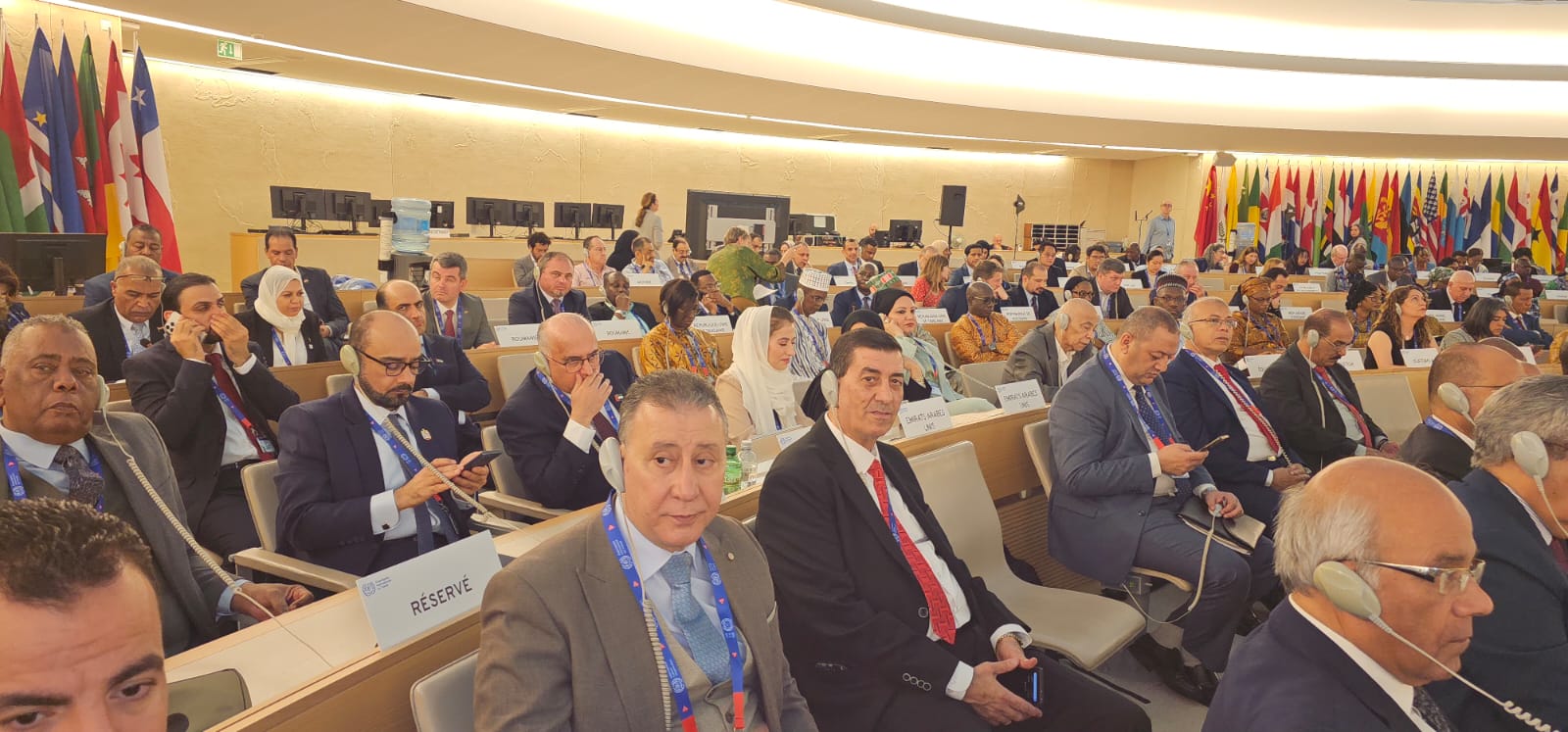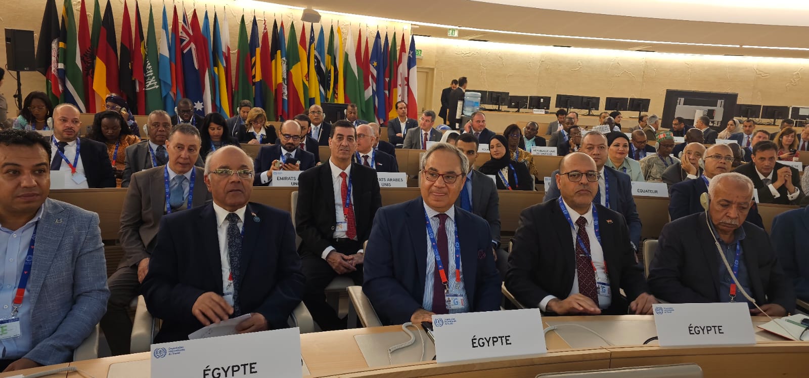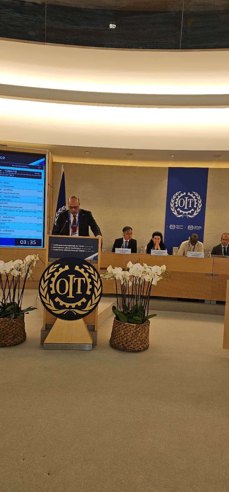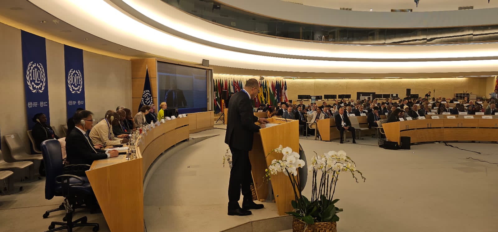 وعن القضية الفلسطينية قال الوزير :"فى الوقت الذى نُثمن فيه قرار مجلس إدارة المنظمة المعروض على المؤتمر لتعديل مركز فلسطين الحالي من حركة تحرير إلى دولة غير عضو لها صفة مُراقب، إلا أنه مازال يتعرض عمال وشعب فلسطين فى الضفة الغربية وقطاع غزة لجرائم وحشية تستهدف إبادتهم ودفعهم إلى التهجير ومغادرة أرضهم قسراً، تحت وطأة آلة الحرب الإسرائيلية وسياسات الحصار والتجويع، فلا يسعنا في هذا المقام إلا أن نشيد ونفتخر بصمود الشعب الفلسطينى ورفضه القاطع للتهجير وتمسكه بأرضه. وندعو إلى الوقف الفوري والدائم لإطلاق النار بقطاع غزة، والسماح بفتح المعابر والدخول الكامل للمساعدات الإنسانية والإغاثية".