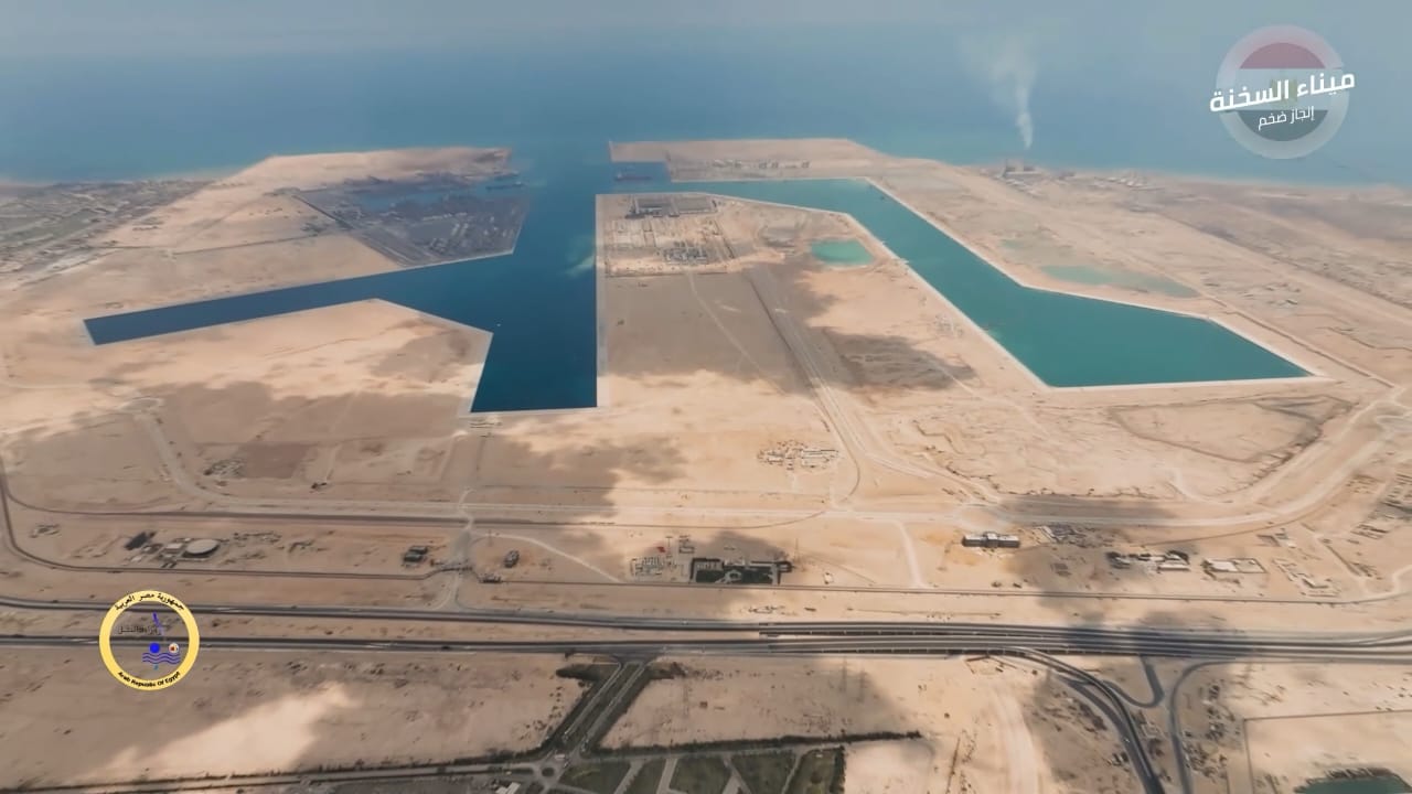 أعمال استكمال وتطوير ميناء السخنة.. شاهد أحدث تصوير جوي للمشروع