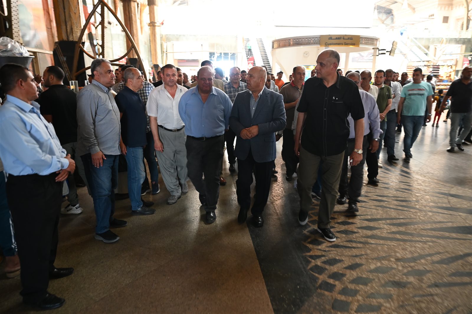 بدأت الجولة بتفقد الوزير الساحة الخارجية وشبابيك التذاكر والمول التجاري