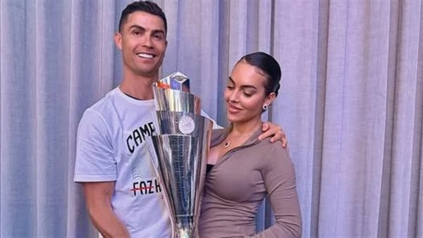 نشر رونالدو على الصفة الرسمية له على موقع " فيس بوك " صورة تجمعه مع زوجته جورجينا يحمل كأس البطولة.