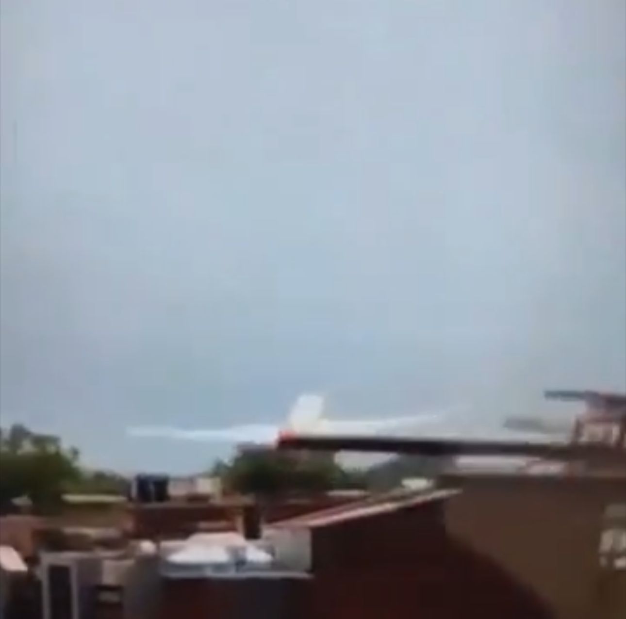 انتشرت صور ومقاطع فيديو تُظهر حطام الطائرة المشتعل وجزءًا من الذيل عالقًا فوق المبنى، وسط دخان كثيف وعمليات إخلاء واسعة.