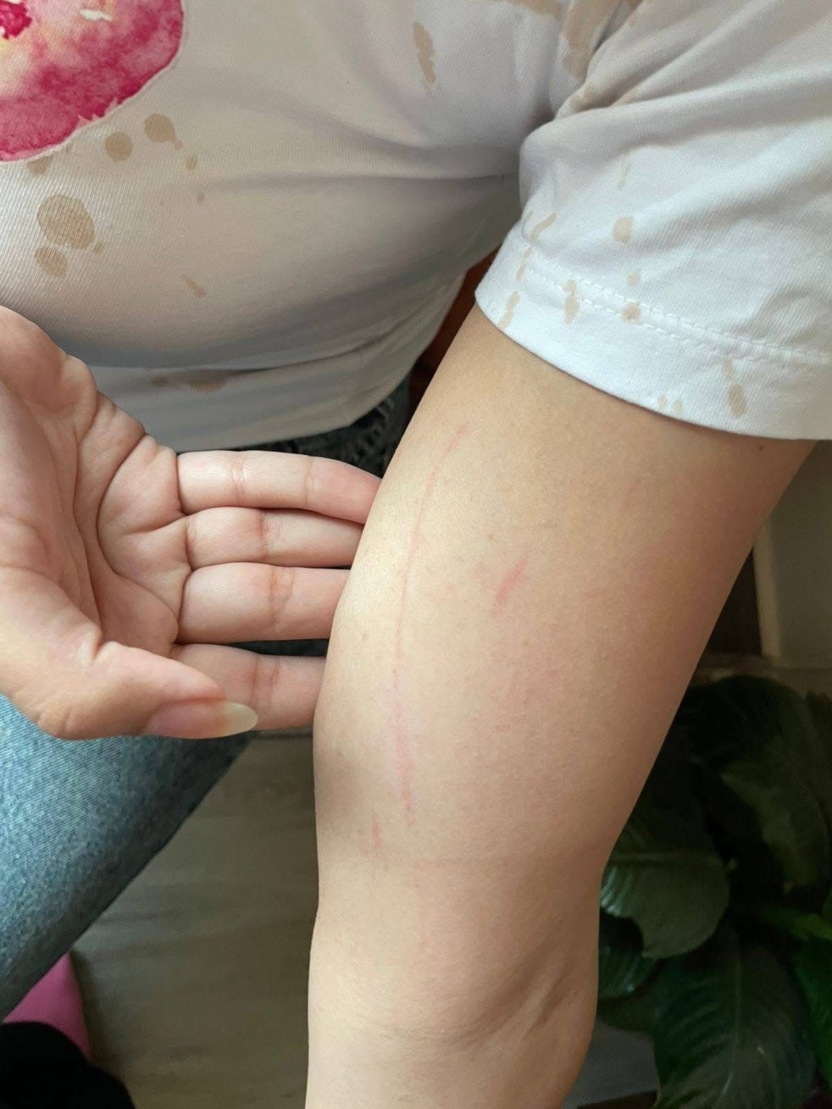 واستطردت،" وبالتالي انا بدأت ازعق واقولهم انهم مش محترمين وهما نازلين شتايم بالاب والام وفجأه لاقيت البنتين المحترمين دلقين فى وشى انا وبنتى كوبايه كابتشينو سخن و رد بول و كل اللى كان في ايده حاجه بدا يرميها في وشنا وهدومى بالكامل اتغرقت وبنتى ادلق عليها كابتشينو من شعرها لاخرها ودرعها اتحرق فطبعا اتجننت وبقيت بحاول اوصلها والناس ماسكه بنتي مش عارفه تعملي حاجه وشايفانى والبنت بضربني بالقلم طيرت النضارة من على وشى وكل ده وراحت شدانى بمنتهي القوه برا المحل و قلعتني طرحتى ضربتني بالقلم ومقلعانى الحجاب والامن بيحجز او كان بيصور حقيقي مش فاكره كسروا موبايله وكل دا بنتي جوا عماله تصوت و دالناس مسكاها مش عارفه تعملي حاجه فى الشارع ".