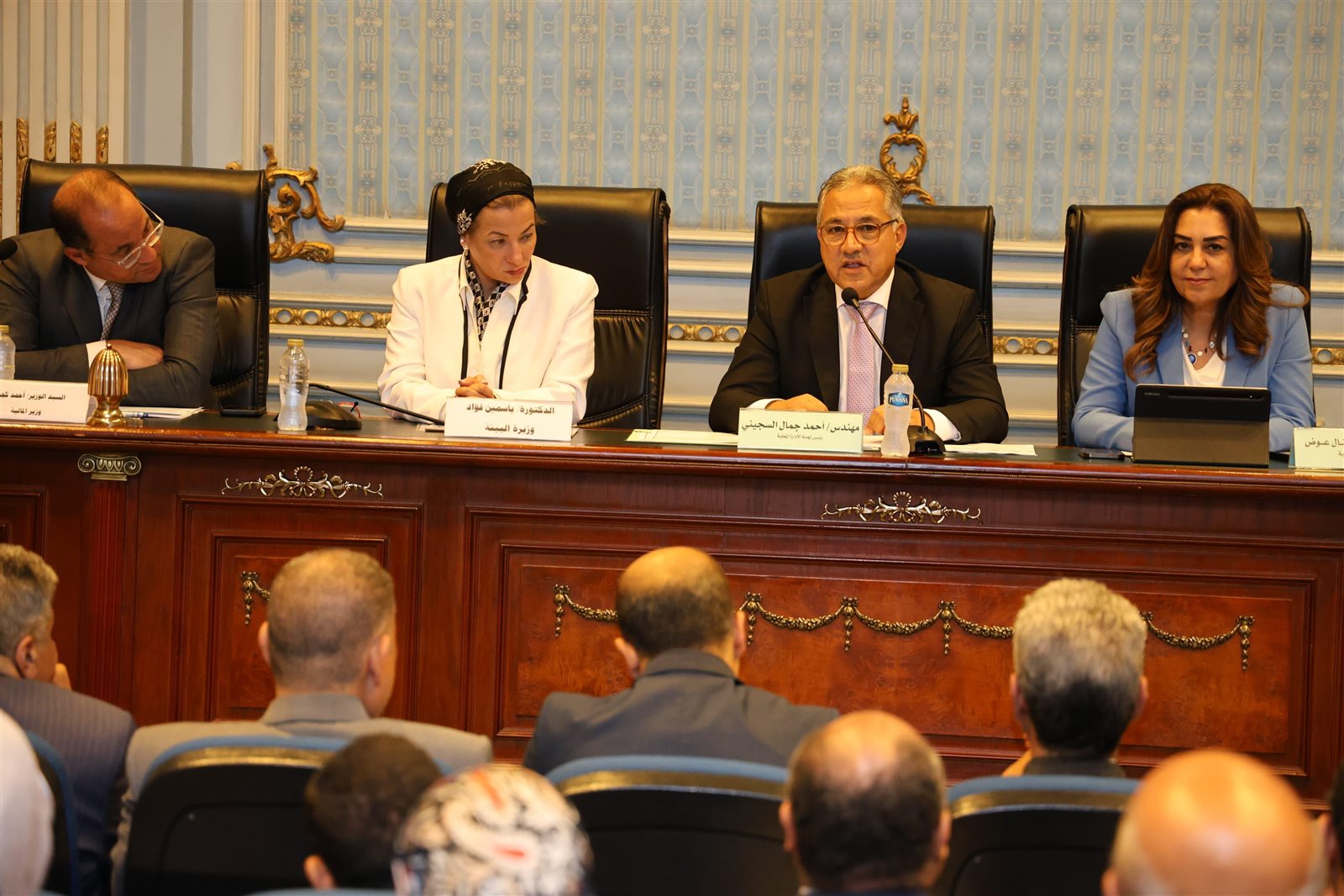 جاء ذلك بحضور الدكتورة ياسمين فؤاد وزيرة البيئة والدكتور أحمد كجوك وزير المالية وقيادات وزارات الكهرباء والتنمية المحلية والبيئة والمالية ، وترأس الجلسة المهندس أحمد السجيني عضو مجلس النواب و رئيس لجنة الإدارة المحلية وحضور النائب محمد الحسيني وكيل اللجنة و النائب محمد وفيق وكيل اللجنة والنائب عمرو درويش أمين سر اللجنة.