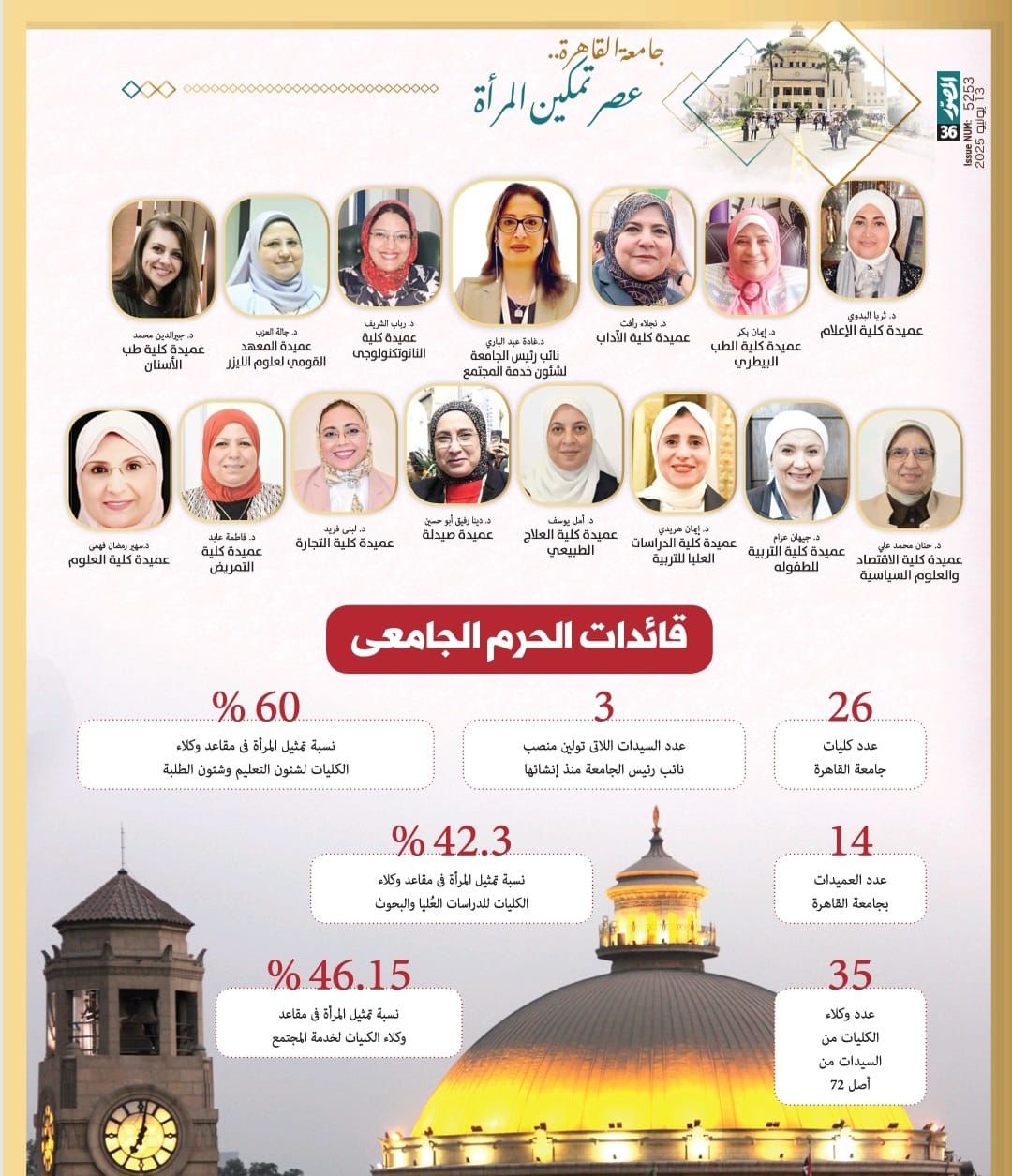 جامعة القاهرة في صدارة تمكين المرأة أكاديميًا وإداريًا: مجلة المصور تسلط الضوء على تجربة الجامعة في ملف خاص