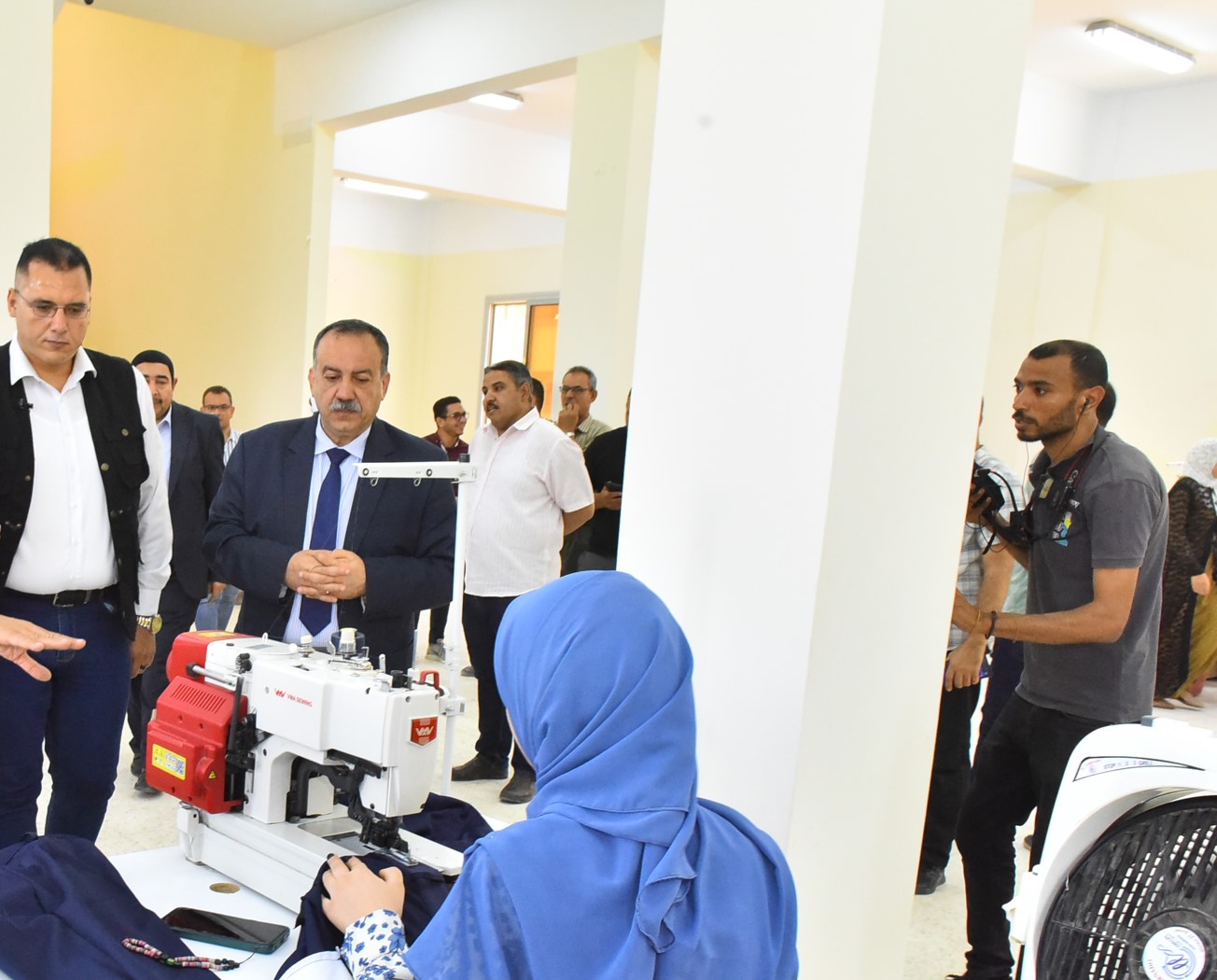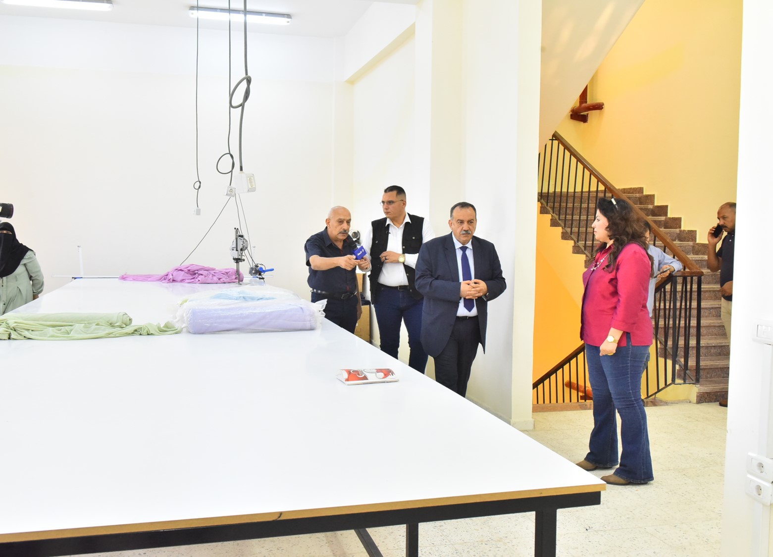وشملت الجولة تفقد أقسام المجمع، لا سيما مشغل الخياطة والتطريز، حيث تابع المحافظ مراحل التشغيل والماكينات المتوفرة والتي تشمل ماكينات خياطة، عراوي، سرفلة، تركيب أزرار، مقص كهربائي، ومكواة بخار. كما اطلع على جهود تدريب وتشغيل الفتيات داخل المشغل، موجّهًا بتقديم كافة أوجه الدعم لتوسيع نطاق الإنتاج وزيادة فرص التمكين الاقتصادي للمرأة والشباب.