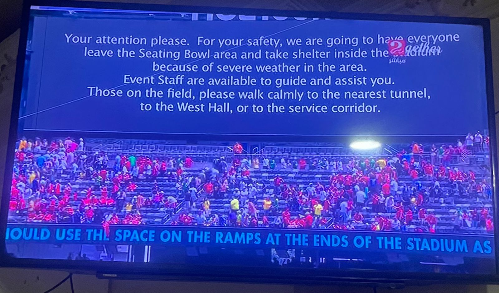 ومن المقرر أن يقيم الطاقم التحكيمي مع اللجنة الخاصة بمراقبة المباراة الوضع وتحديد موقف المباراة سواء بالعودة من جديد واستئناف المباراة أو تأجيل وخوض ما تبقى من المباراة في وقت لاحق.