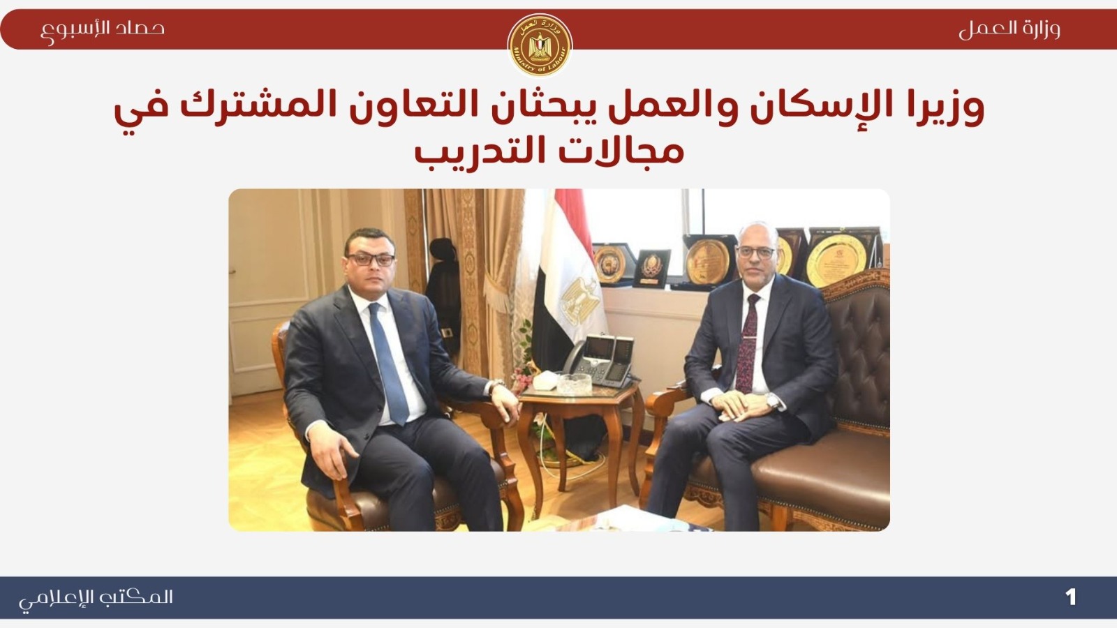كان من أبرز أنشطة هذا الأسبوع، استقبال وزير العمل السيد محمد جبران، السيدة ميليستا دجور جيفيتش ستامينكوفسكي وزيرة العمل والتوظيف والمحاربين القدماء والشؤون الاجتماعية الصربية،بهدف فتح أسواق عمل جديدة أمام الكوادر المصرية الماهرة والمُدربة ،و تنفيذًا للإتفاقيات ومذكرات التعاون التي شهد توقيعها –في يوليو الماضي -فخامة السيد الرئيس عبدالفتاح السيسي، رئيس الجمهورية، والرئيس الصربي ألكسندر فوتشيتش ،خاصة في مجال العمل والتوظيف.