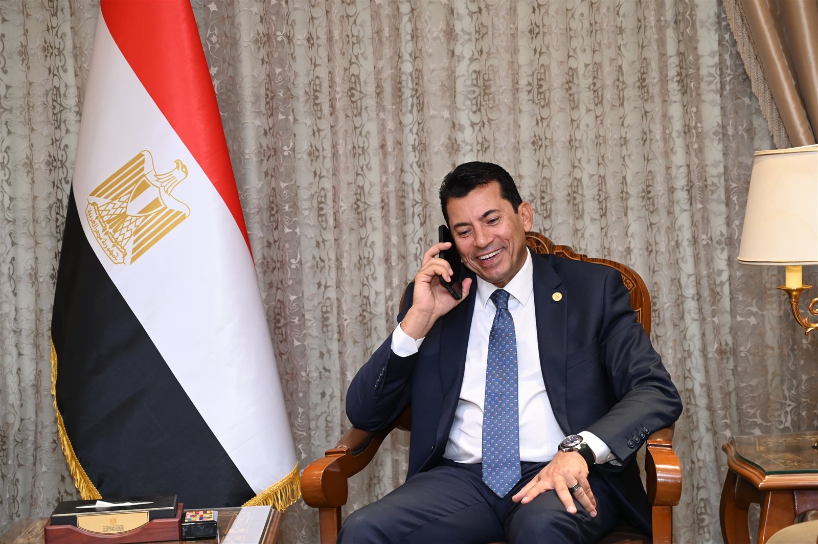 وزير الرياضة يهنئ رئيس اتحاد الجمباز بعد التتويج بفضيتي بطولة العالم للناشئات