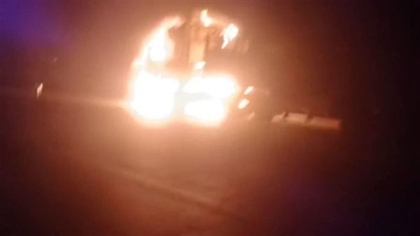 احتراق كابينة سيارة نقل على طريق بورسعيد دمياط