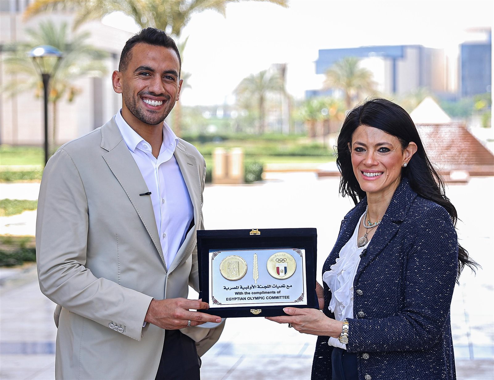 وقدّم اللاعب أحمد الجندي، رئيس لجنة اللاعبين الأولمبية وعضو مجلس إدارة اللجنة الأولمبية، درع اللجنة الأولمبية المصرية، تكريمًا للدكتورة رانيا المشاط، وزيرة التخطيط والتنمية الاقتصادية والتعاون الدولي.