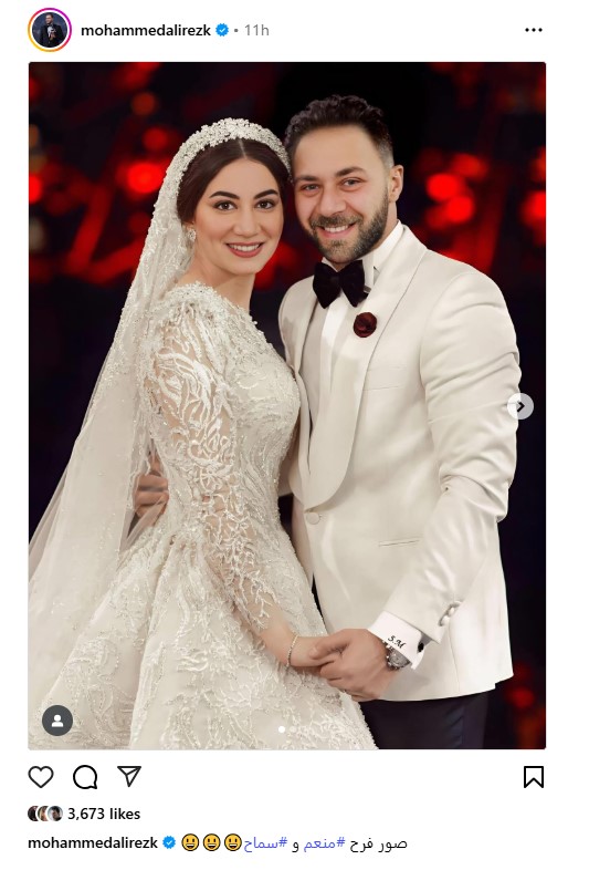 نشر الفنان محمد علي رزق صور زفاف تجمعه بفدوى عابد من خلال مشاركتهم في مسلسل فات الميعاد، على موقع تبادل الصور والفيديوهات الانستجرام، وعلق: “فرح منعم وسماح”.