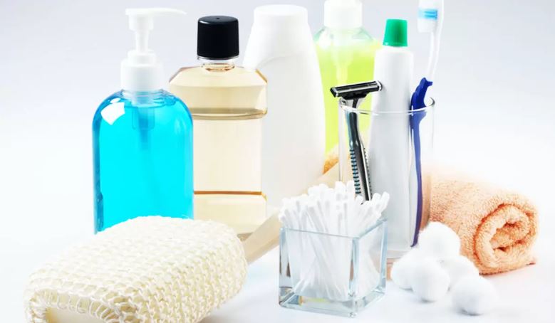 شامبو وبلسم وفرشاة أسنان ومعجون.