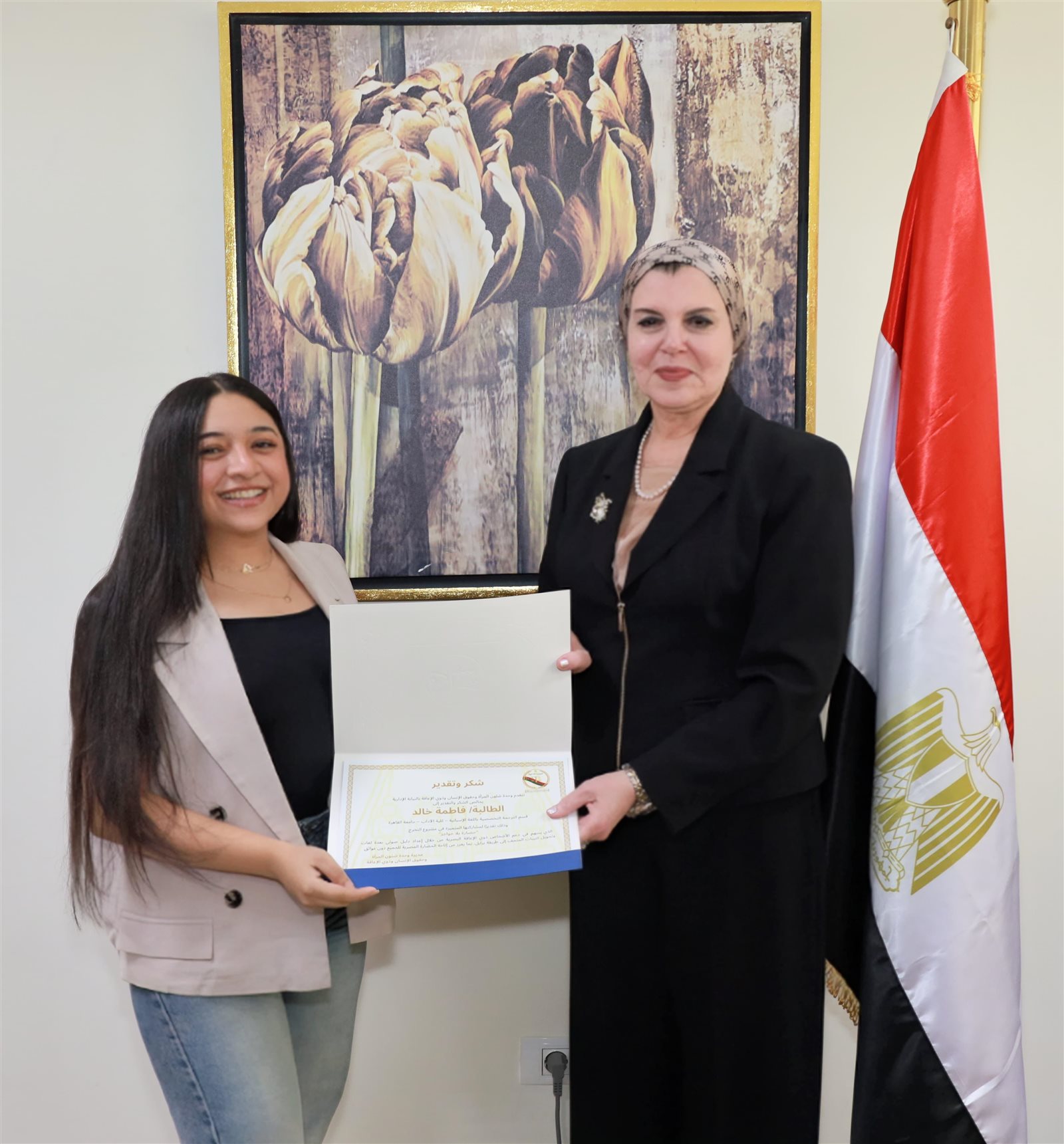 تحت رعاية المستشار عبد الراضي صديق – رئيس هيئة النيابة الإدارية، وفي إطار دعم الهيئة للمبادرات الشبابية وتشجيع الإبداع الطلابي الذي يعزز قيم المساواة والدمج المجتمعي، كرّمت وحدة شؤون المرأة وحقوق الإنسان وذوي الإعاقة برئاسة المستشارة بريهان محسن، اليوم الأربعاء، مجموعة من طالبات كلية الآداب – قسم الترجمة التخصصية باللغة الإسبانية بجامعة القاهرة، المشاركات في تنفيذ مشروع التخرج بعنوان: "حضارة بلا حواجز".