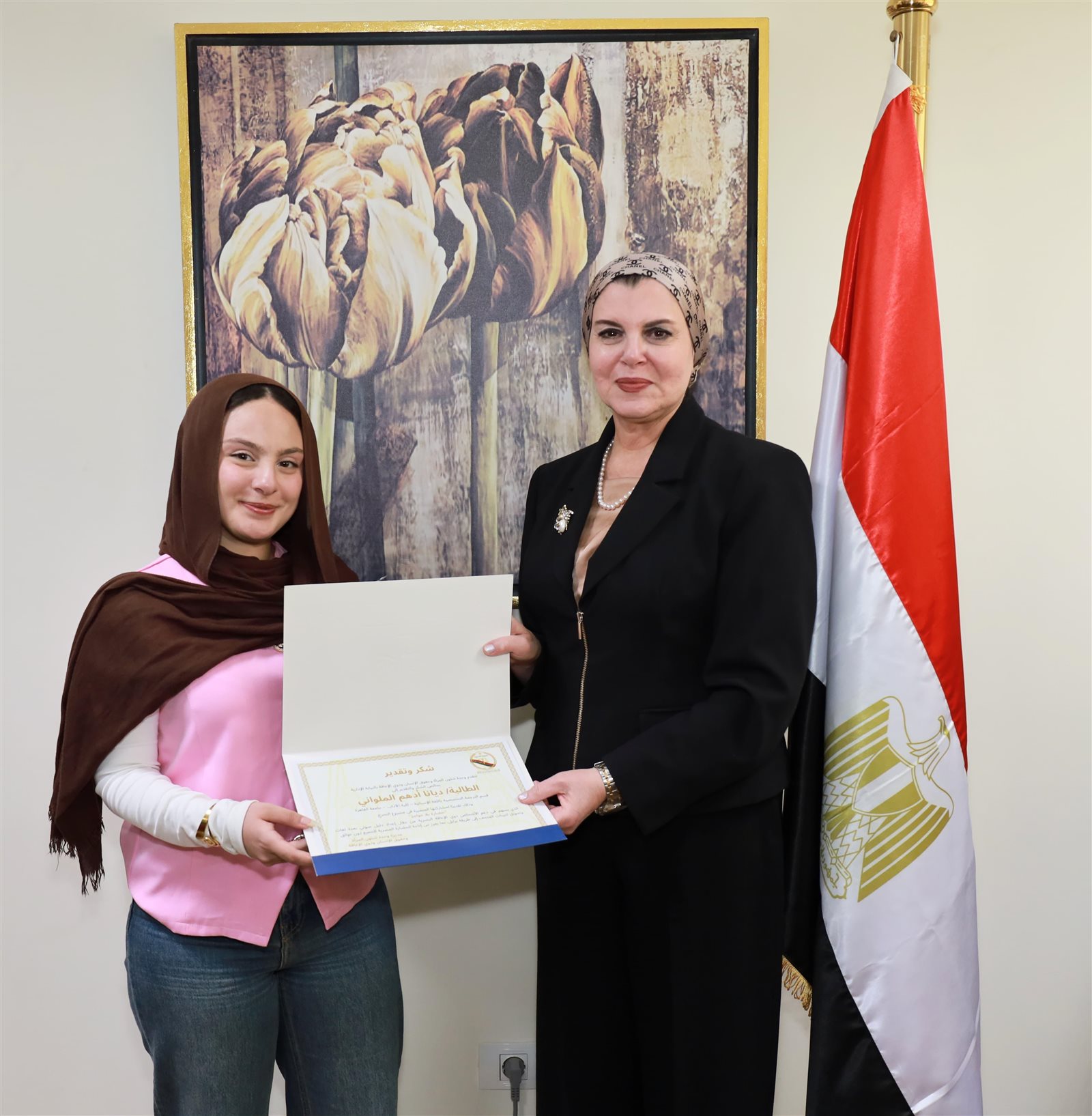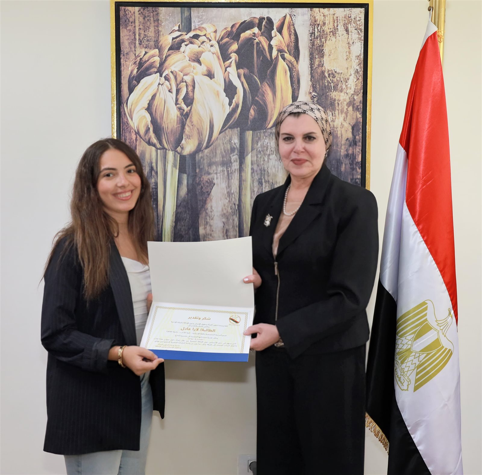 وشمل التكريم الطالبات المشاركات في إعداد المشروع وهن: ديانا أدهم الملواني، هنا عادل حنفي، مايان أحمد، ندى شريف، لارا عادل، فرح محمد، زينة تامر، وفاطمة خالد.