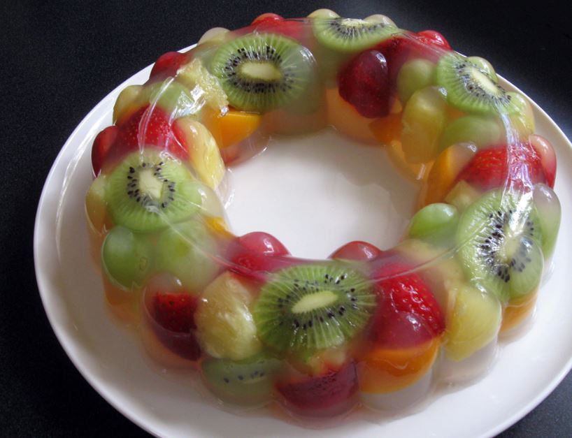 يوضع الجيلي (وهو بارد) برفق فوق الفواكه