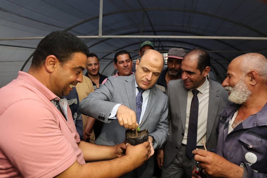 محافظ كفرالشيخ يصطحب رجال النظافة خلال تفقده أعمال تطوير مشتل التشجير بالوحدة المحلية