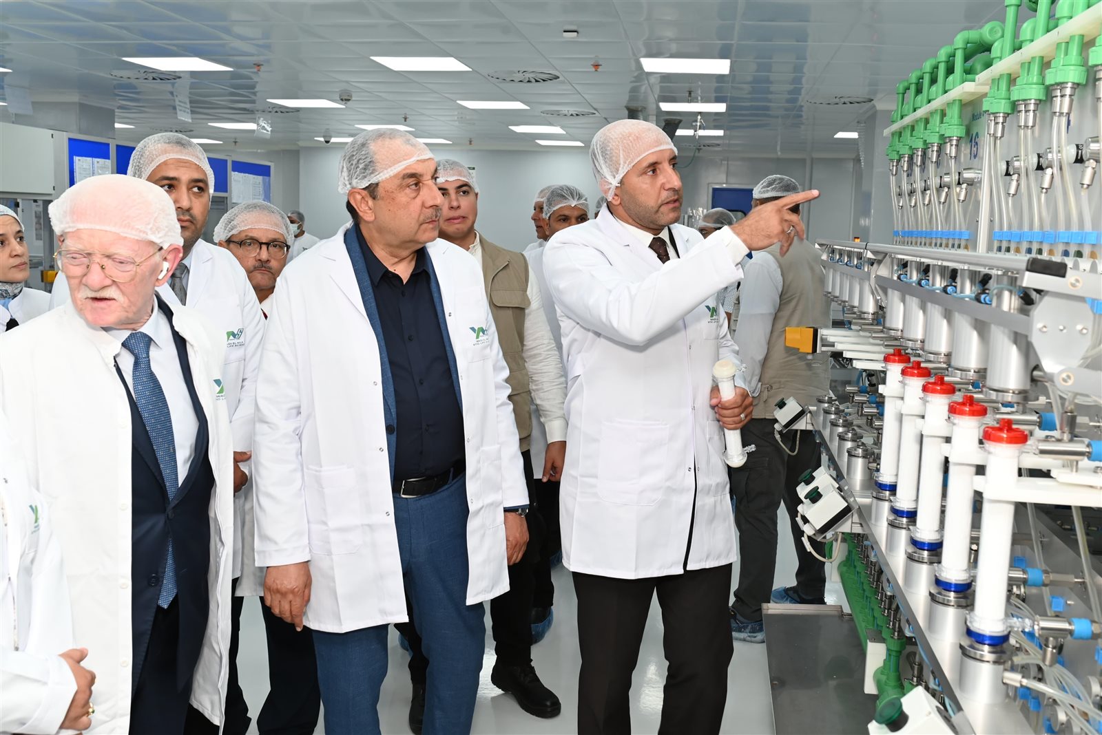 وخلال الجولة، تفقد الوزير مختلف مراحل العملية الإنتاجية داخل المصنع، وما شهده من تحديثات فنية وهندسية وإنشائية، شملت تطوير البنية التحتية بما يتوافق مع معايير التصنيع الجيد، واستيفاء الاشتراطات الفنية والرقابية للحصول على التراخيص اللازمة للتشغيل، وذلك بحضور الدكتور أشرف الخولي العضو المنتدب التنفيذي للشركة القابضة للأدوية، والدكتور محمد عمرو مصطفى رئيس مجلس إدارة شركة "وادي النيل اشتيو لايف ساينس"، والدكتور ياسر فوزي العضو المنتدب التنفيذي لشركة النصر للكيماويات الدوائية.