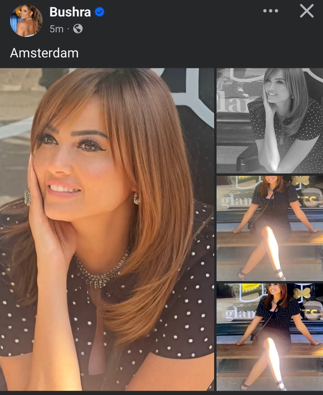 بفستان أسود بنقط بيضاء.. بشرى تتألق في شوارع امستردام