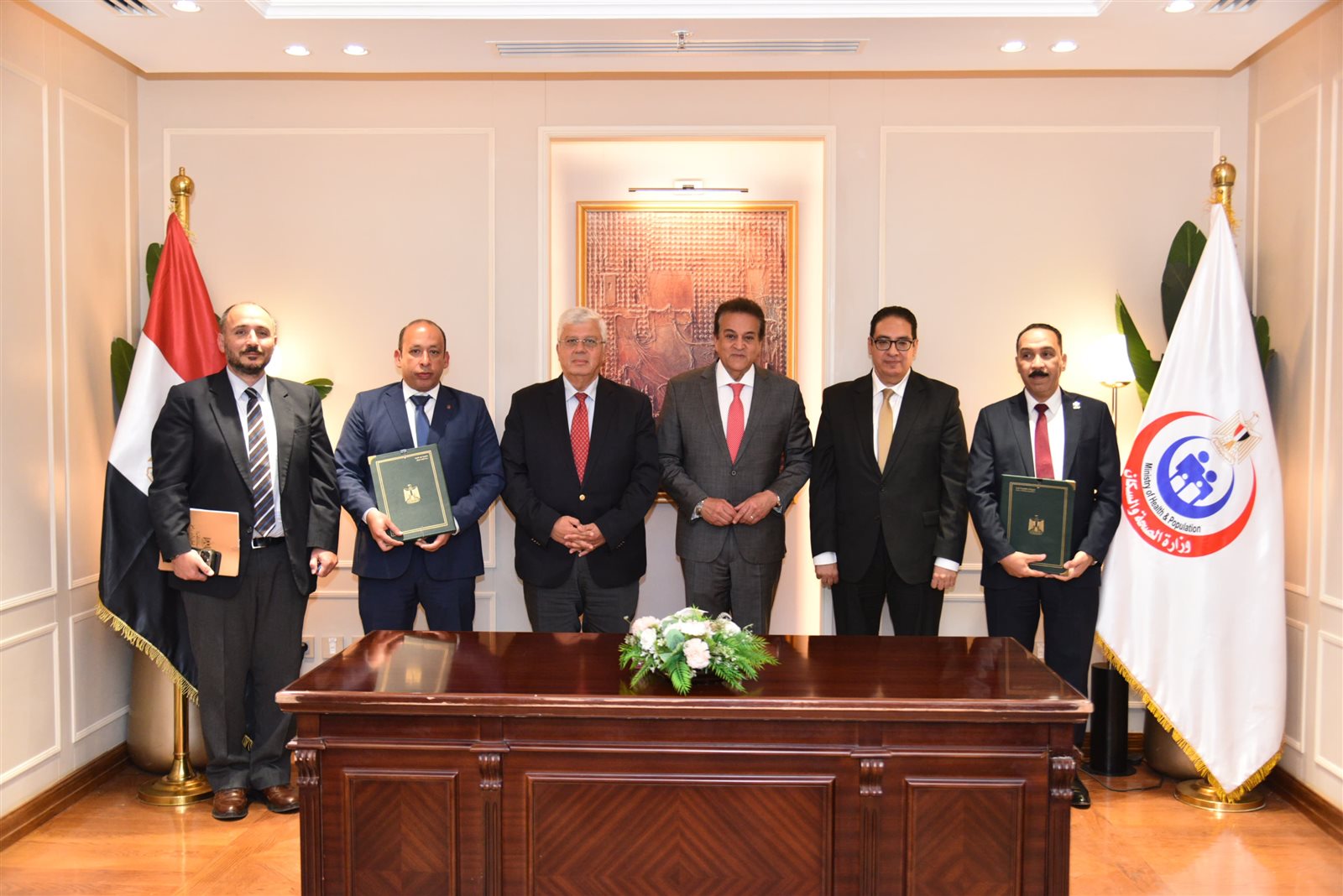 وخلال الاجتماع الذي عقد على هامش توقيع البروتوكول، استهل الدكتور خالد عبدالغفار كلمته بالترحيب بالحضور، مؤكدًا أن جامعة القاهرة تمثل صرحًا علميًا عريقًا وسندًا مهمًا لخدمة المجتمع، بفضل كوادرها المتميزة والتعاون المستمر مع وزارة الصحة، وأشار إلى الدور الحيوي لهذه الكوادر في قيادة مبادرات الصحة العامة بالشراكة مع الوزارة، منوهًا بأهمية قطاع التدريب، والحاجة إلى دعم كل المؤسسات التعليمية في تأهيل وتدريب كوادر وزارة الصحة، ووجه الوزير الدكتور محمد عبدالفتاح، رئيس قطاع تنمية المهن الطبية، بإعداد جدول زمني لتنفيذ البرامج التدريبية حتى نهاية العام.