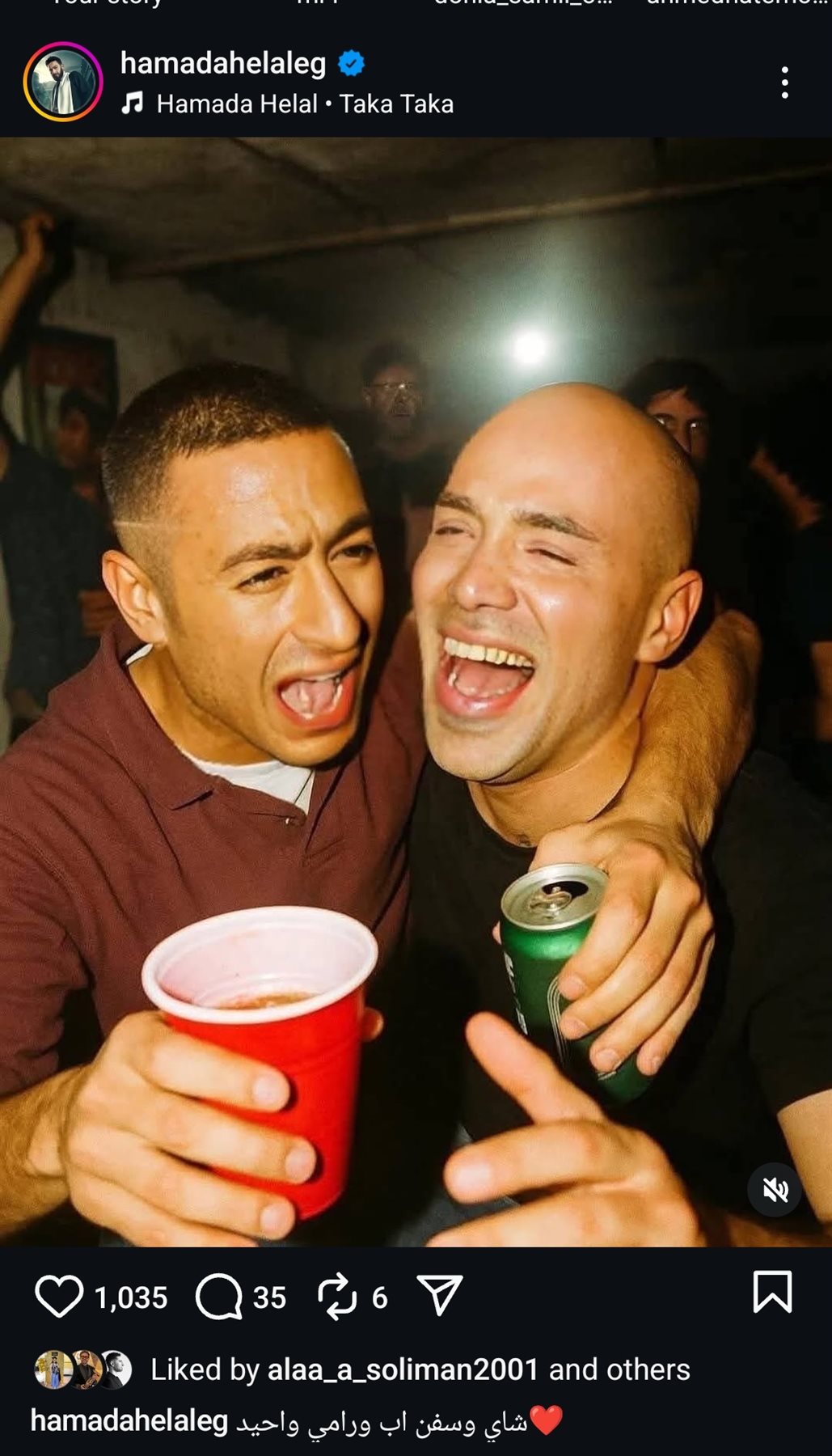 وكتب حمادة هلال عبر حسابه الرسمي على موقع التواصل الاجتماعي لتبادل الصور والفيديوهات الانستجرام: “شاي وسفن اي ورامي وحيد”.