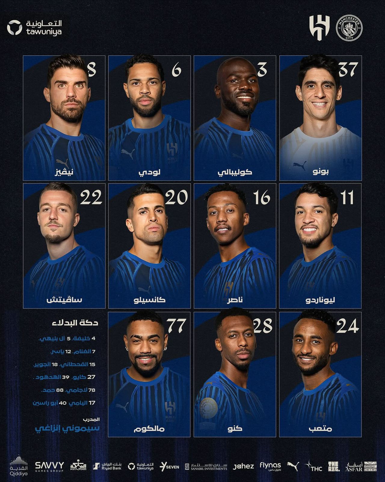 - تشكيل الهلال الرسمي لمواجهة مانشستر سيتي
