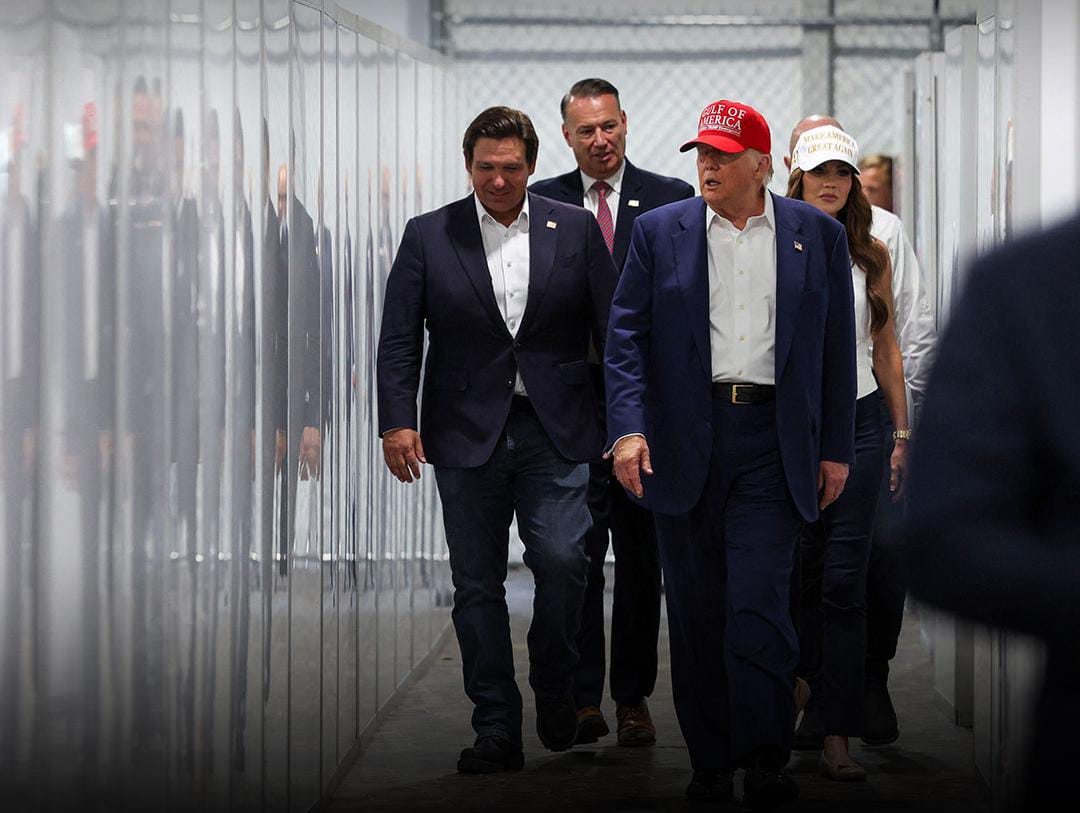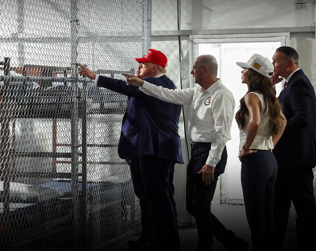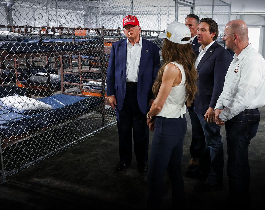 قام الرئيس الأمريكي دونالد ترامب بزيارة ولاية فلوريدا أمس الثلاثاء، لافتتاح مركز احتجاز جديد للمهاجرين غير الشرعيين، وسط جدل واسع ومعارضة شديدة من جانب الحزب الديمقراطي، ومنظمات حقوقية، وممثلين عن الأمريكيين الأصليين، وذلك بسبب المخاوف الإنسانية والبيئية المرتبطة بالموقع الجديد.