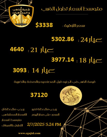 ارتفع سعر الذهب في نهاية تعاملات اليوم الأربعاء 2 يوليو 2025، بنحو 10 جنيهات مقارنة بآخر تحديث له منذ ساعة.