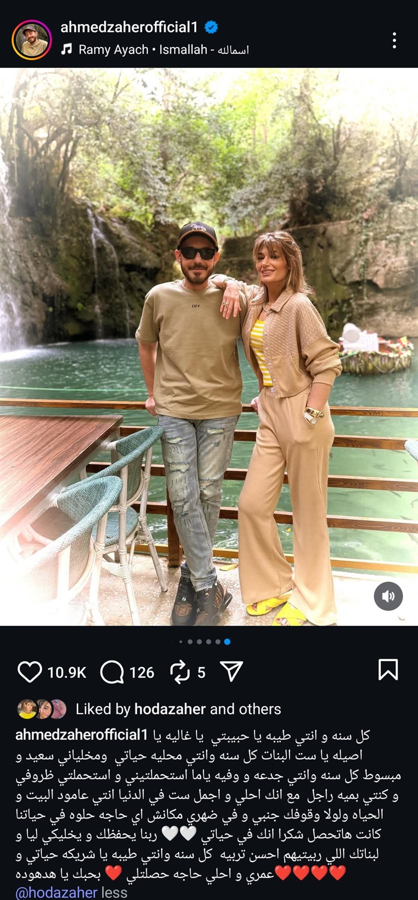 وجه الفنان أحمد زاهر تهنئه تحمل أسمى معاني الحب والوفاء لزوجته الفنانة هدى زاهر، وذلك عبر حسابه الرسمي على موقع التواصل الاجتماعي لتبادل الصور والفيديوهات الانستجرام.