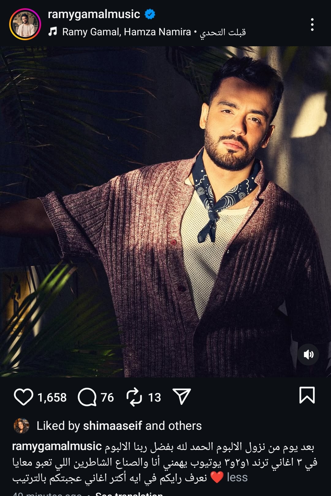 رامي جمال بمناسبة نجاح ألبومه: "يهمني أنا والصناع الشاطرين اللي تعبو معايا نعرف رايكم"