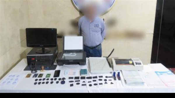 وعقب تقنين الإجراءات القانونية، تم ضبط المتهم، وبتفتيش مقر الشركة عُثر بحوزته على عدد من الأختام والأكلاشيهات المقلدة المنسوبة لجهات وهيئات مختلفة، وكمية من المحررات خالية البيانات ومعدة للتزوير، إلى جانب مجموعة من طلبات التوظيف، والأدوات والأجهزة المستخدمة في أعمال التزوير.