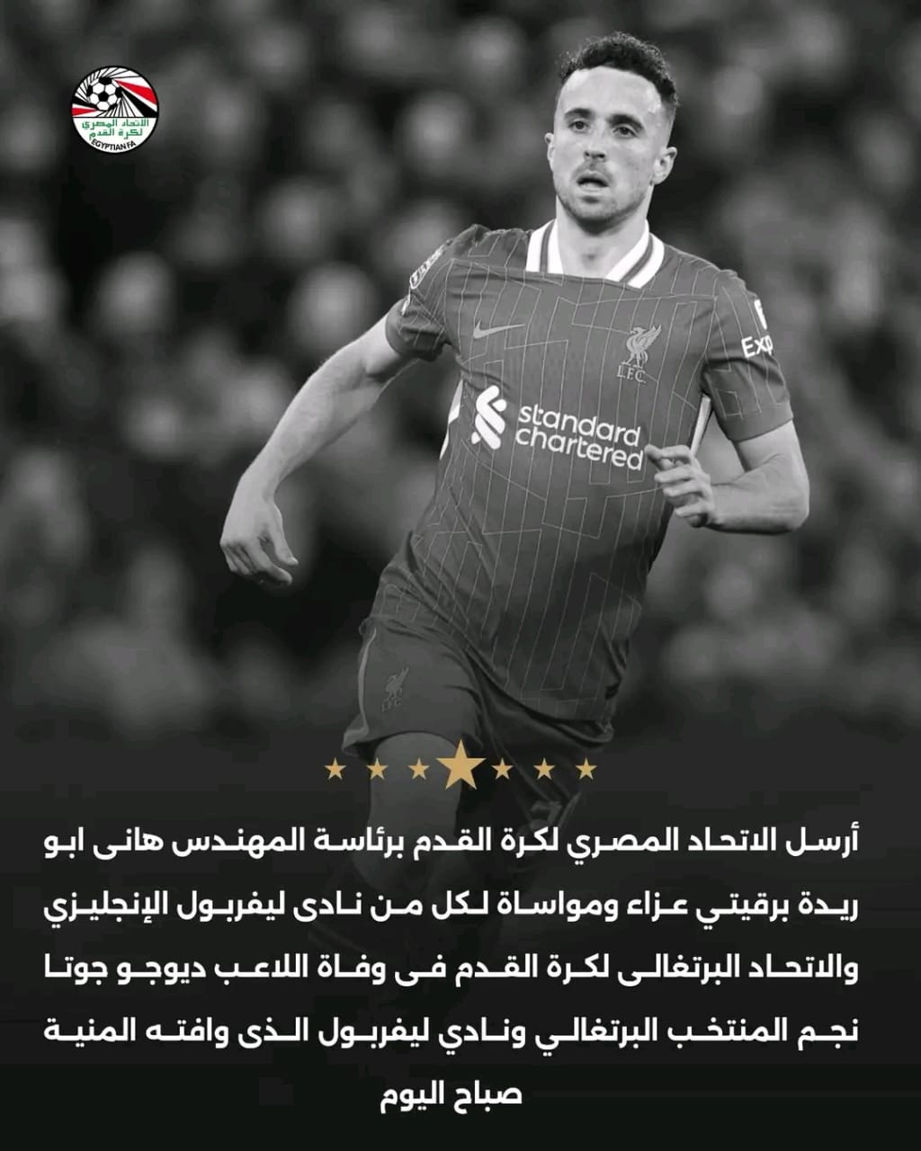 الاتحاد المصري لكرة القدم يعزي ليفربول والاتحاد البرتغالي في وفاة جوتا