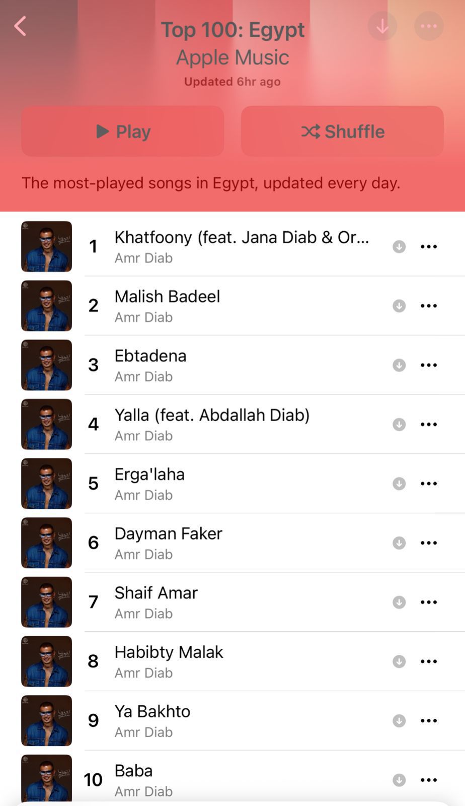 وتواجد عمرو دياب لأول مرة في الترتيب 79 على مخطط ألبوم آي تيونز حول العالم، كما يحتل المركز ال 155 على آي تيونز الولايات المتحدة وما زال يرتفع.
