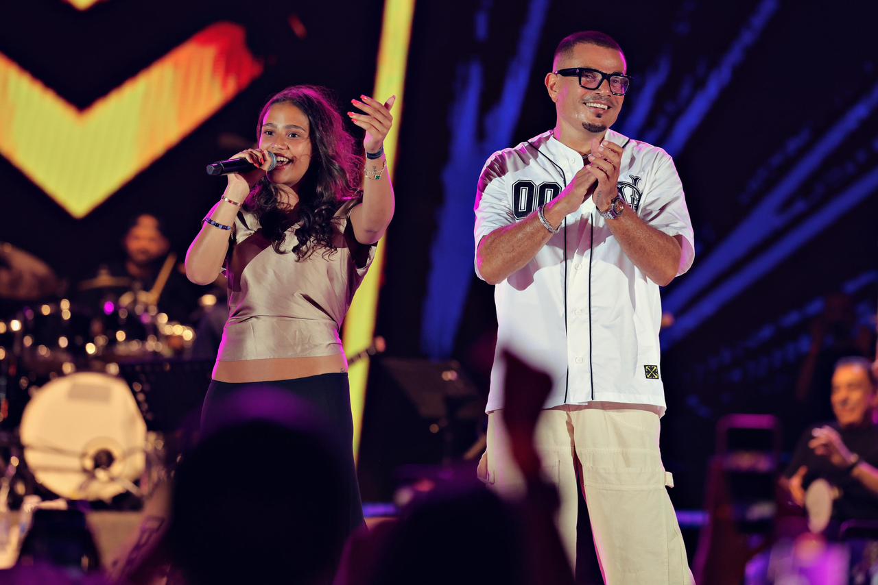 وشهد الحفل لحظة إنسانية ومميزة حين استقبل الهضبة ابنته جانا عمرو دياب على المسرح، وقدّما معًا أغنية “خطفوني” وسط تفاعل كبير من الجمهور. وأشاد عمرو دياب بموهبة ابنته قائلًا: “عمرى ما تخيلت إن بنتي في يوم من الأيام تطلع معايا على المسرح، هي بتغني وبتألف وبتعزف بيانو وموهوبة جدا"