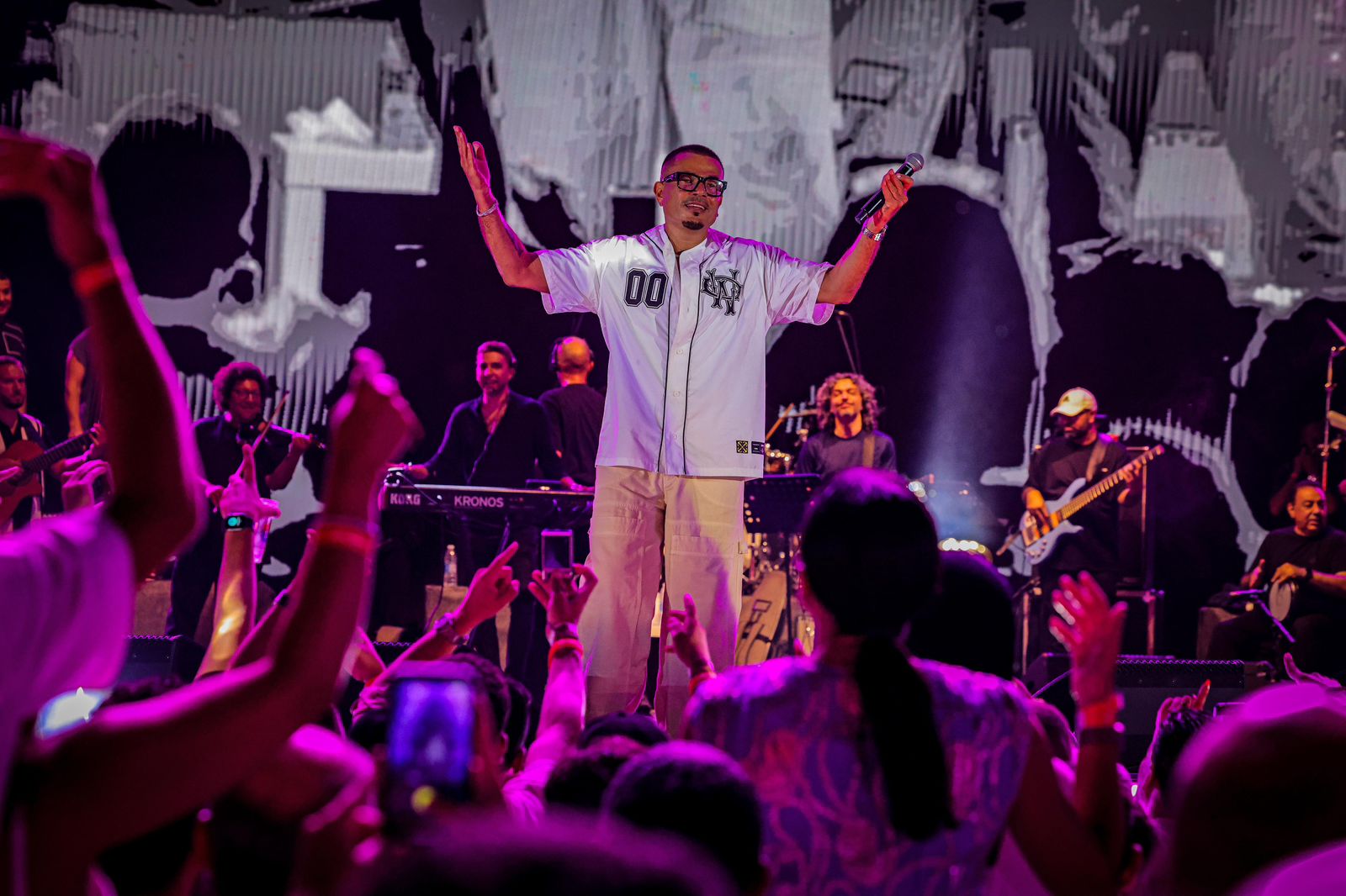 كما استقبل الهضبة على المسرح نجله عبد الله والذي كان قد شاركه غناء "يلا" ضمن أغنيات الألبوم ، وقد دعا أيضا الرابر "بدر" المشارك بمقطع الراب في أغنية خطفوني ليؤديها على المسرح.