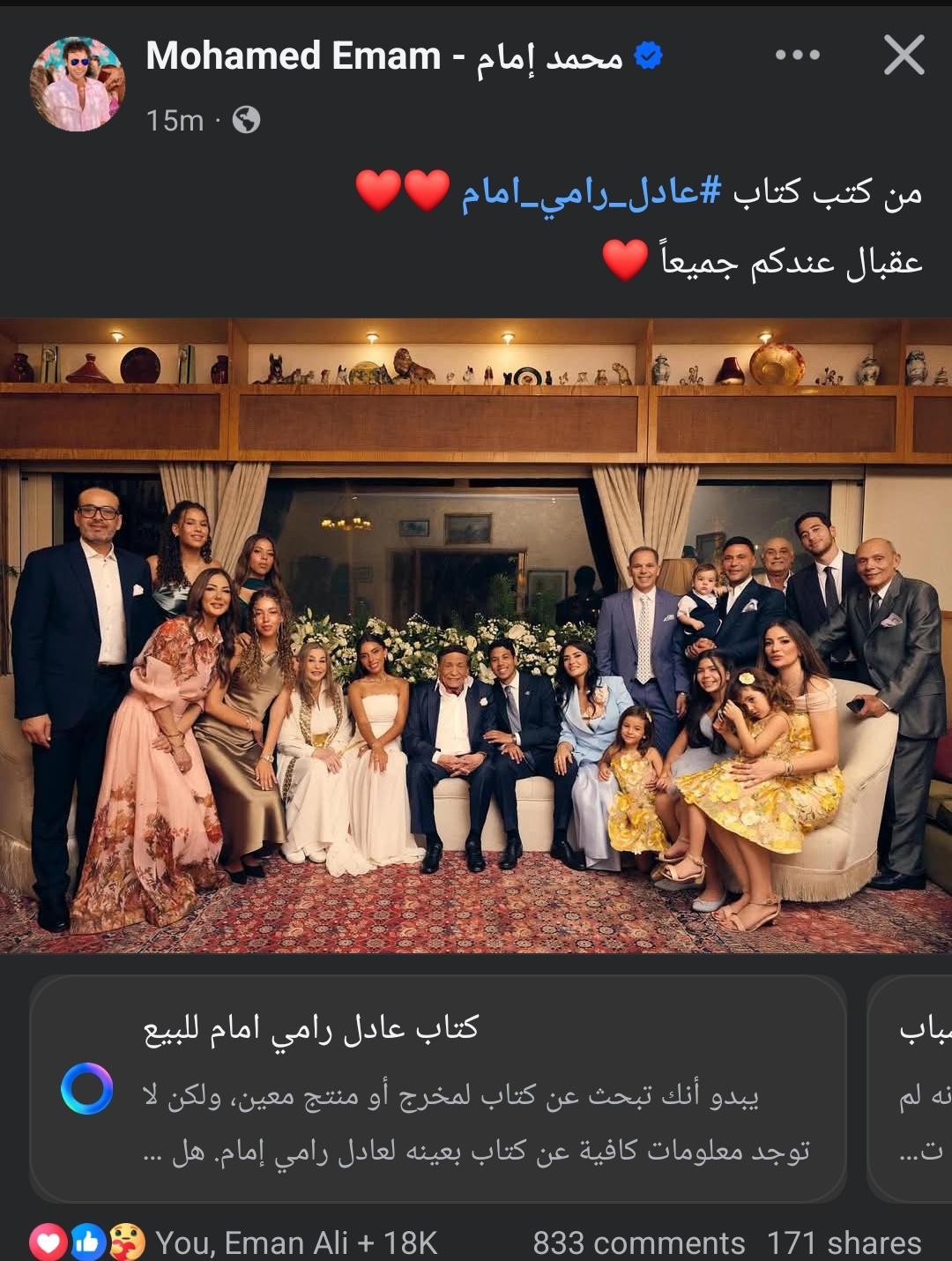 عودة الزعيم.. رامي إمام يشارك جمهوره بفرحته بزفاف نجله