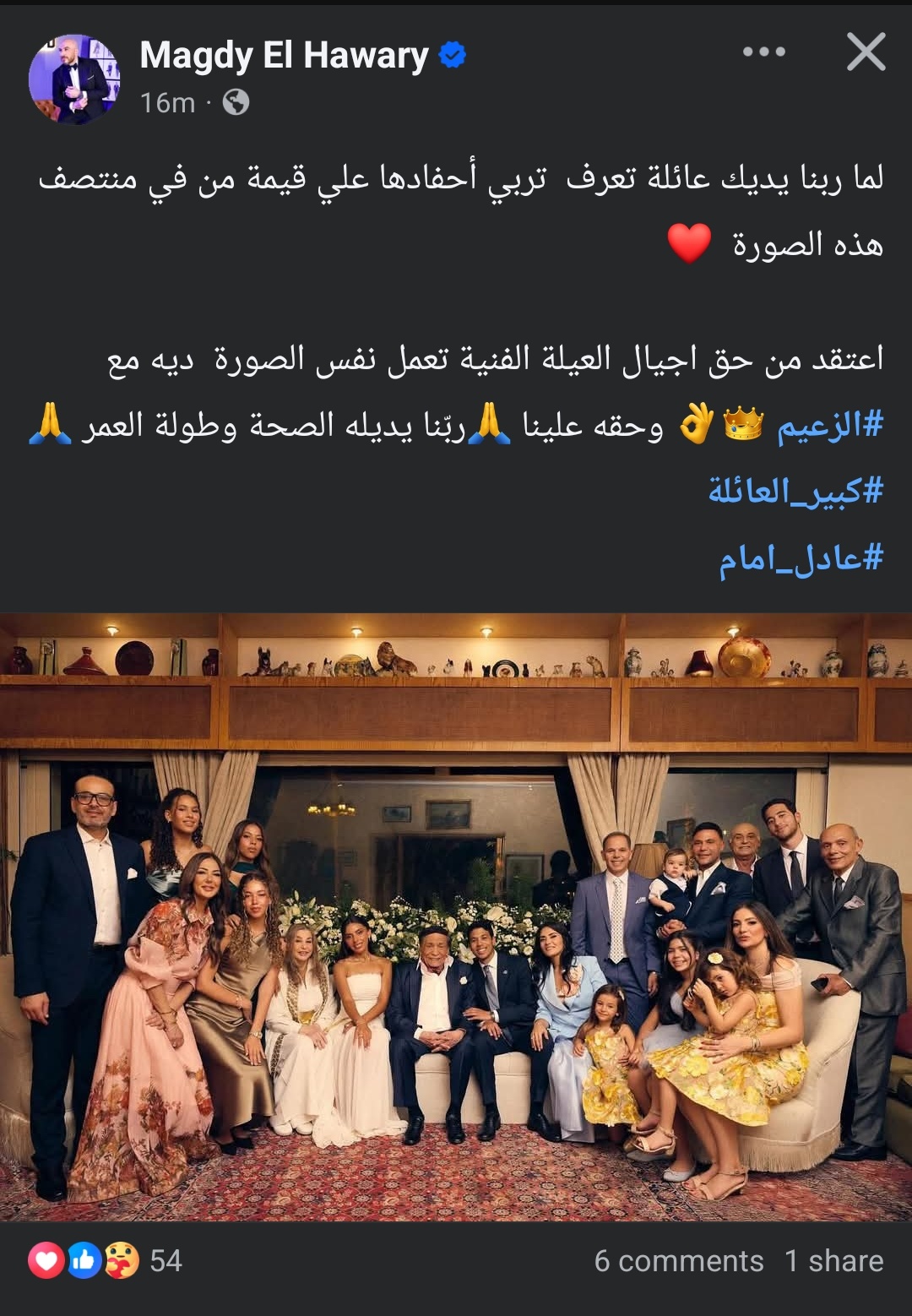 "الزعيم كبير العائلة".. تعليق مجدي الهواري بعد ظهور عادل إمام