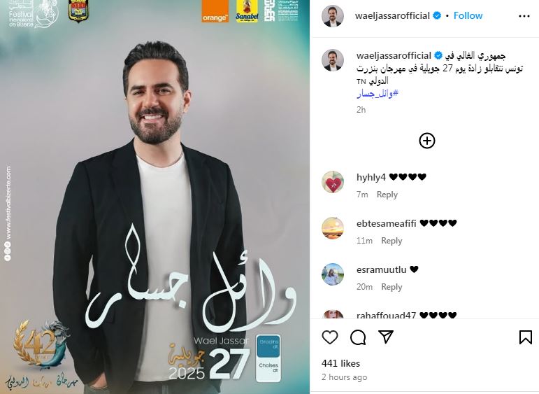 وروج جسار للحفل عبر صفحته الرسمية "إنستجرام" وكتب" جمهوري الغالي في تونس نتقابلو زادة يوم 27 جويلية في مهرجان بنزرت الدولي".