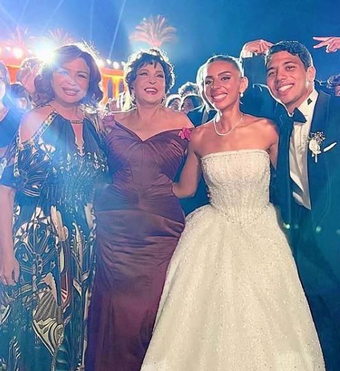 ومن أبرز الوجوه الفنية التي حضرت المناسبة، يسرا، ولبلبة، وكريم عبدالعزيز، وماجد الكدواني، إلى جانب المغنيين تامر حسني وأحمد سعد، اللذين قدّما وصلة غنائية خلال حفل الزفاف.