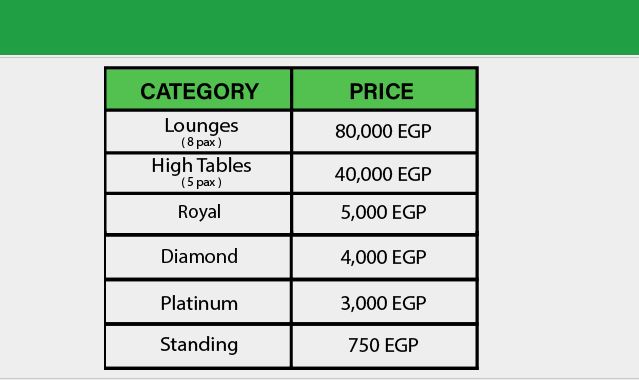 كما جاءت أسعار الحفل كالتالي :