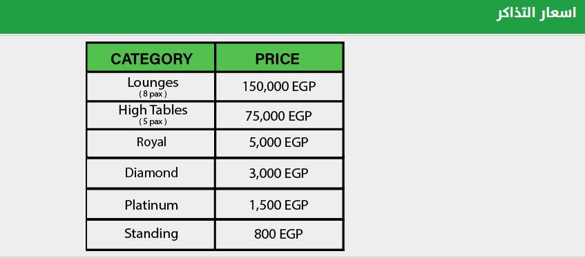 كما جاءت أسعار الحفل كالتالي :
