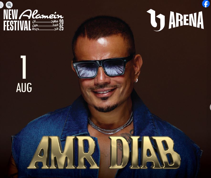 يستعد النجم عمرو دياب لإحياء حفل غنائي كبير ضمن فعاليات النسخة الثالثة من مهرجان العلمين 2025 وذلك يوم 1 أغسطس القادم على مسرح يو أرينا ومن المقرر أن يقدم الهضبة باقة من أجمل أغانية الشهيرة والمتميزة من أحدث ألبوماته التي طرحها مؤخرا "ابتدينا ".