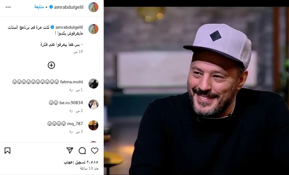 ونشر عبد الجليل صورة له أثناء تواجده كضيف في برنامج “الستات ميعرفوش يكدبوا” عبر حسابه الرسمي بموقع إنستجرام وعلق عليها ساخرًا: “كنت مرة في برنامج الستات مايعرفوش يكدبوا، بس هما بيعرفوا علي فكرة”.