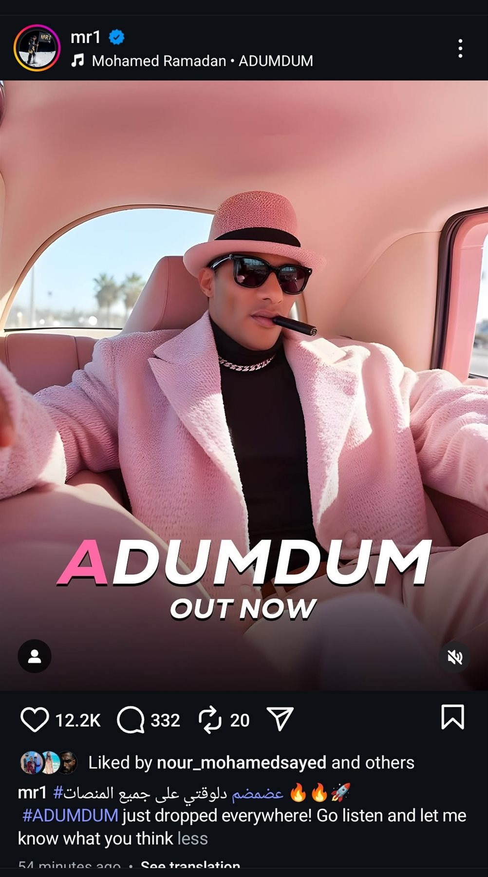 نشر محمد رمضان على حسابه الشخصي فيديو من الأغنية عضمضم، على حسابه الشخصي بموقع التواصل الاجتماعى تبادل الصور والفيديوهات الانستجرام:"عضمضم دلوقتي على جميع المنصات، انتشر في كل مكان! استمع وأخبرني برأيك".