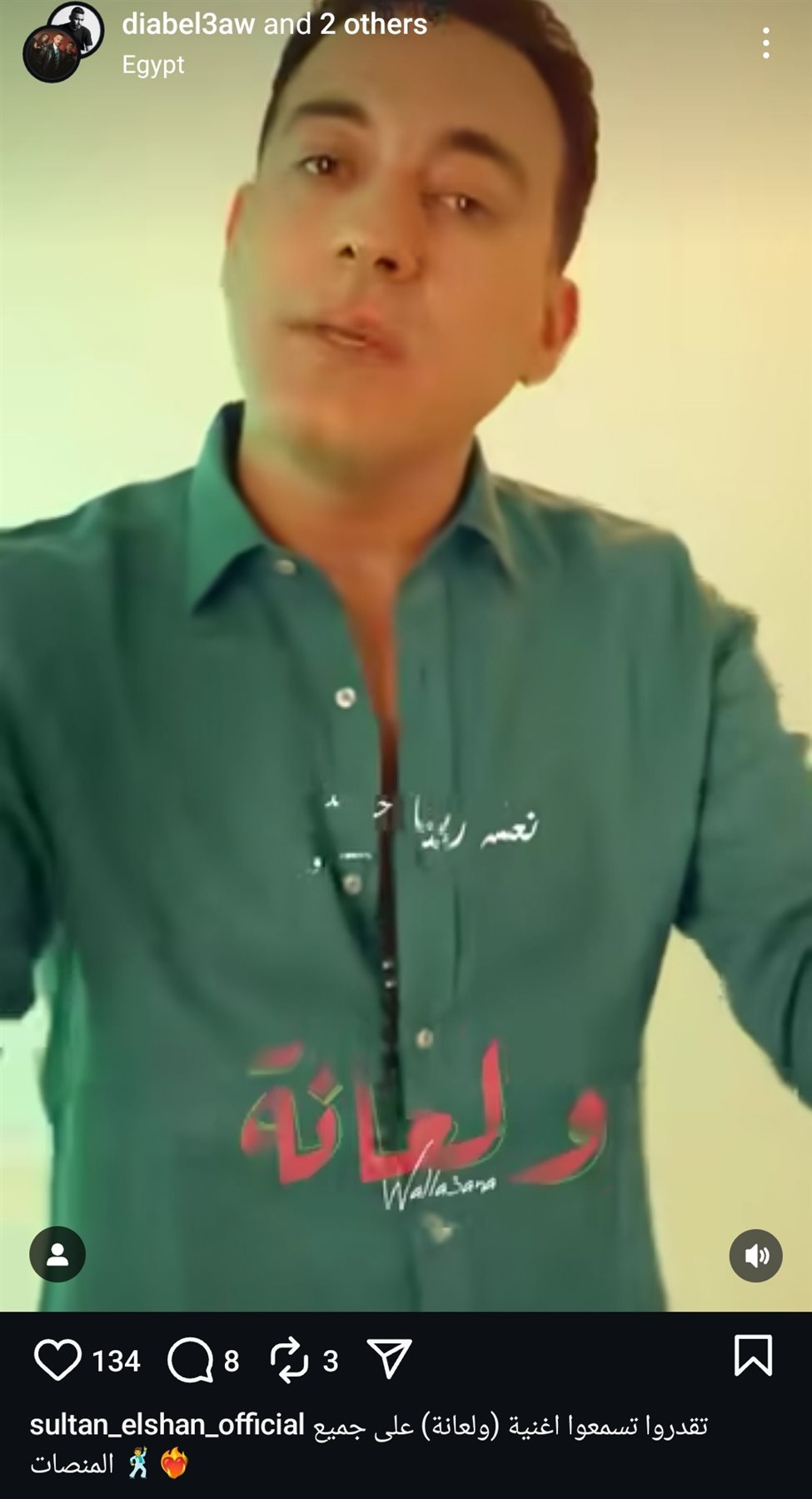 وكتب سلطان الشن عبر حسابه الرسمي على موقع التواصل الاجتماعي لتبادل الصور والفيديوهات الانستجرام: تقدروا تسمعوا اغنية “ولعانة" على جميع المنصات.