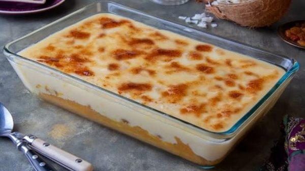 تسلق البطاطا مع الماء والسكر ثم تقشر وتهرس مع الفانيليا والبيكنج بودر